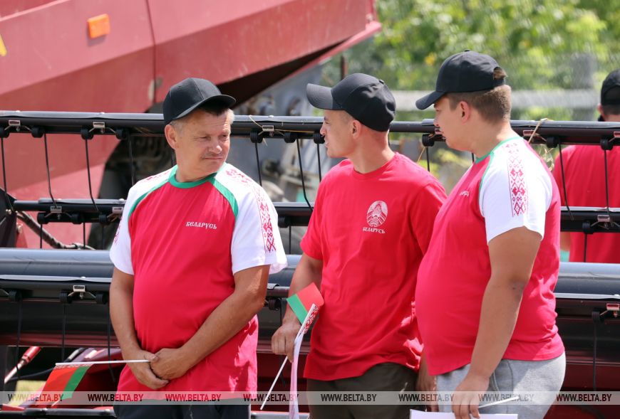 В небольших перерывах настрой хлеборобов поддерживают музыкальные поздравления от работников культуры, а также добрые напутствия-благодарности от руководства района, общественных организаций, политических партий. "Именно благодаря вам у нас есть на столе свежий душистый хлеб. Поэтому хотелось бы пожелать вам здоровья, успехов в работе. Чтобы техника работала, не ломаясь. Чтобы погода не подводила. Чтобы урожай был собран вовремя, а каждый колосок пошел на благо", - адресовал теплые слова аграриям заместитель председателя Брагинского райисполкома, председатель районного отделения Белорусской партии "Белая Русь" Роман Тесленок.