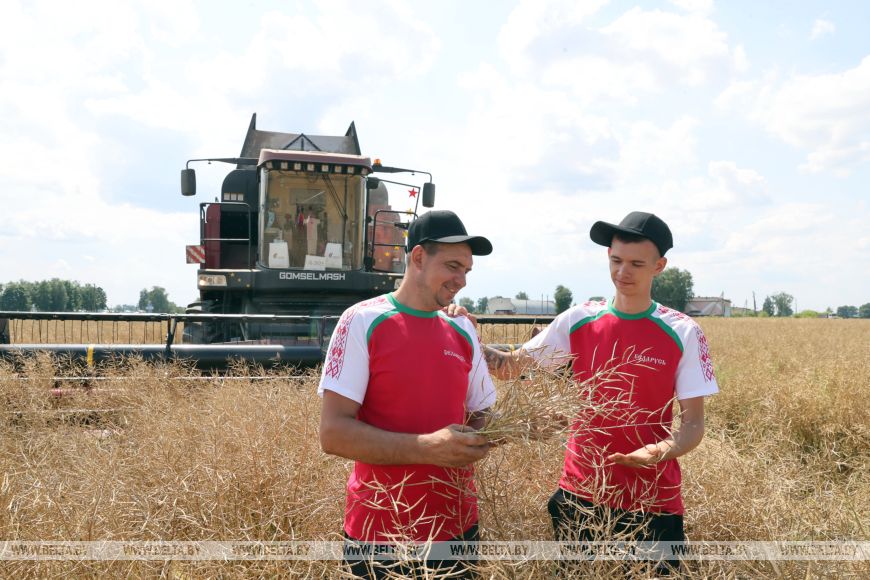 "Сейчас у нас самая горячая пора. В 7 утра мы уже на работе. Осмотр комбайна, механизмов. Начинаем продувку, прочистку комбайна, заправляемся. Роса упала - и поехали в поле. Если прекрасная погода, нет дождей, и до 23.00 можем работать", - дает четкий расклад дня старший комбайнер. Он и его напарник с техникой на "ты" с самого детства. Оба получили образование в Белорусской государственной сельскохозяйственной академии в Горках.