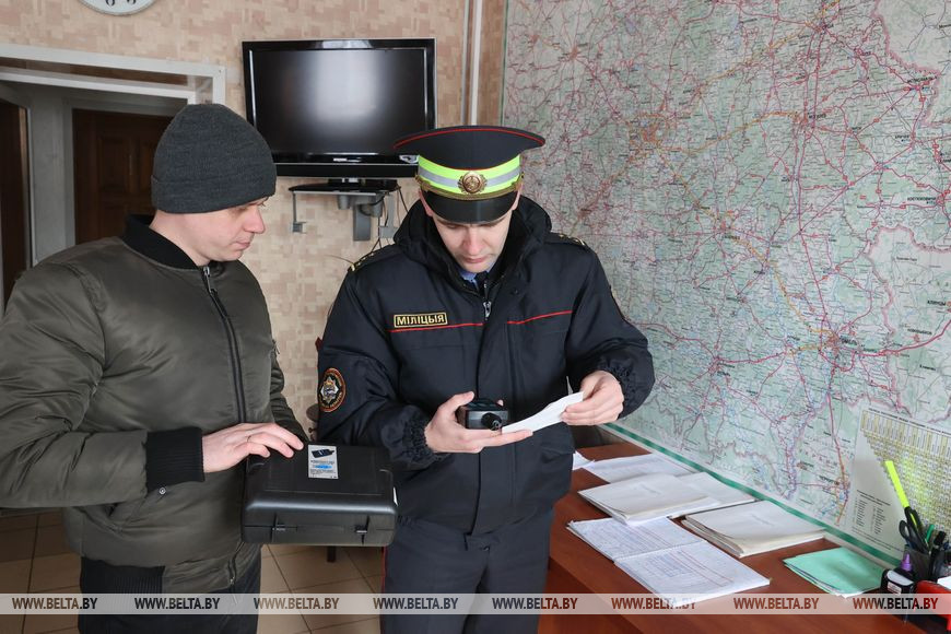 В это же время инспектор по розыску межрайонного отдела оперативного реагирования и розыска ГАИ УВД Могилевского облисполкома Артур Моисеенко проводит осмотр стоящей на мехдворе сельскохозяйственной техники. "Обращаем внимание на все, в том числе на наличие светоотражающих элементов. Вне зависимости от того, трактор это, комбайн или прицеп - все это должно быть обозначено. У них должны быть или исправные фонари, или светоотражающие ленты нанесены. Для других участников дорожного движения, когда эти машины переезжают с одного поля на другое или возвращаются на мехдвор, эта техника должна быть заметна. Такой подход позволяет избежать трагических случаев, которые, к сожалению, иногда случаются на дорогах: водитель не заметил в темноте трактор, прицеп или плуг и врезался в него. А потому такие на первый взгляд мелочи помогают избежать трагедии, - рассказал он. - Еще один важный момент - проверка процесса освидетельствования водителей. Уточняем, каким прибором проводится проверка, наличие поверки и необходимых журналов, где отмечается, во сколько он выехал и прибыл".