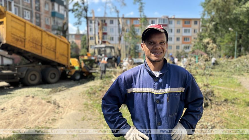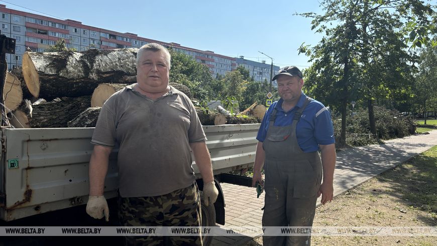 Вместе с коллегами неподалеку трудятся мужчины из "Ремспецстроя"- они сгружают и вывозят бревна у одного из учреждений здравоохранения. "Пришло такое несчастье в город, как тут не поможешь-то? Хлопцы мы здоровые, грузим на машину большие бревна и вывозим их на утилизацию. Как тут закончим - будем дальше работать, поедем туда, где помощь нужна будет, - поделился Леонид Косцов. - Белорусы испокон веков сплоченные. Столько бед пережила наша земля, но наши люди всегда все вместе со всем справлялись. Раз уж беда коснулась родного города, мы отсиживаться в стороне не намерены".