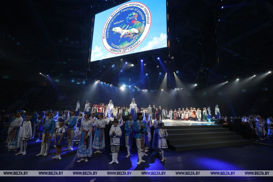 24 июня, Бобруйск /Корр. БЕЛТА/. Яркими творческими номерами и почти полным аншлагом в зале открыли сегодня XVI Международный фестиваль народного творчества "Венок дружбы" в Бобруйске, передает корреспондент БЕЛТА.