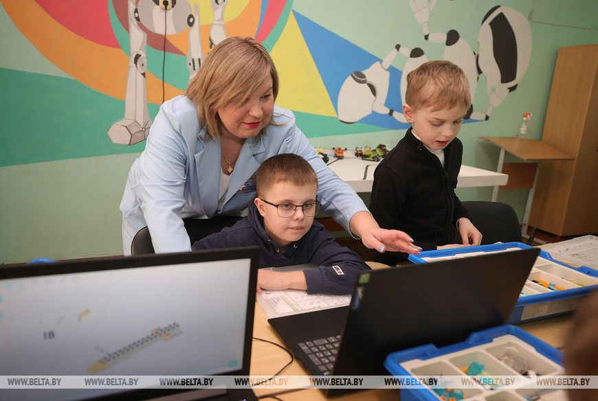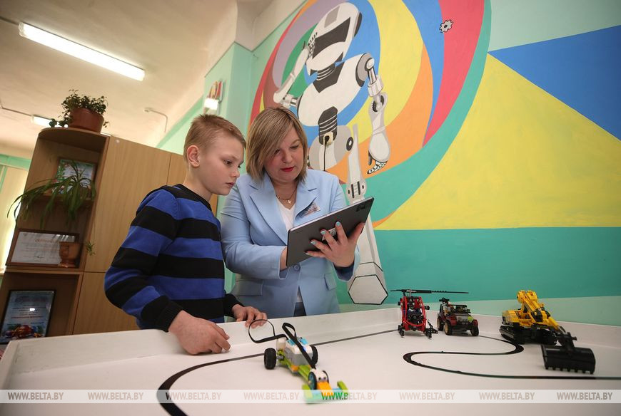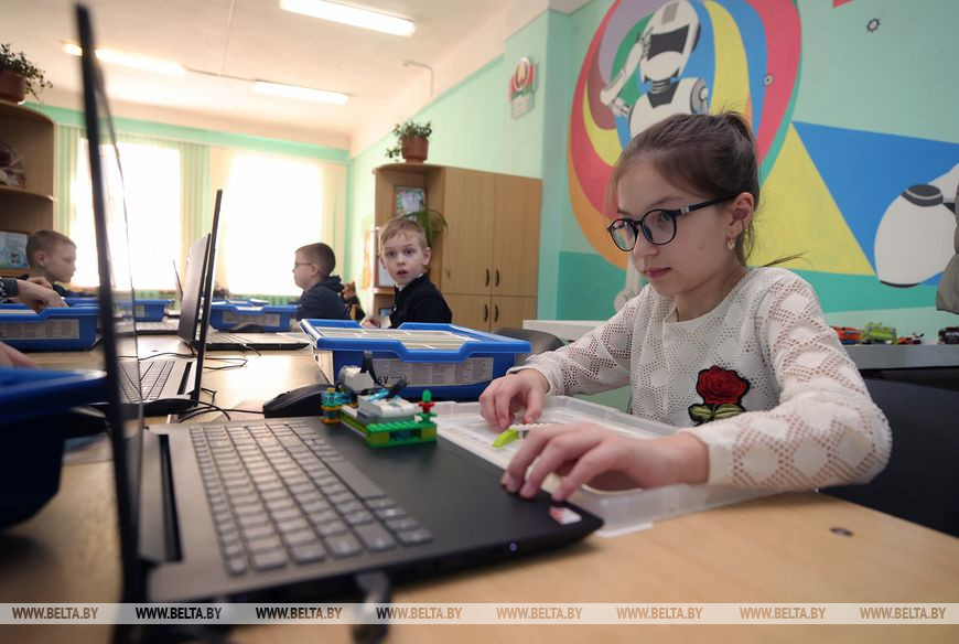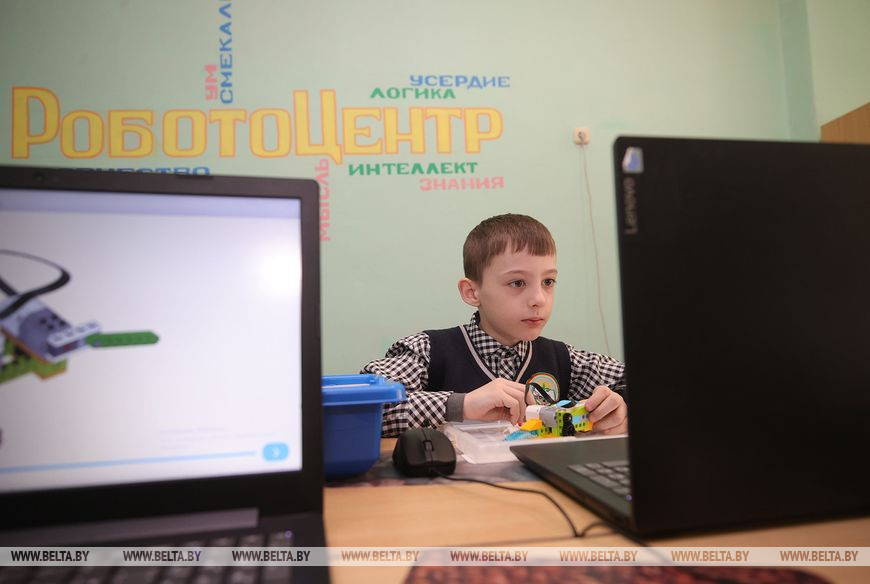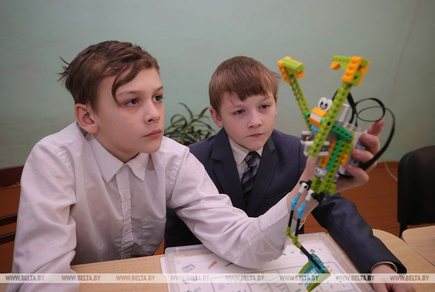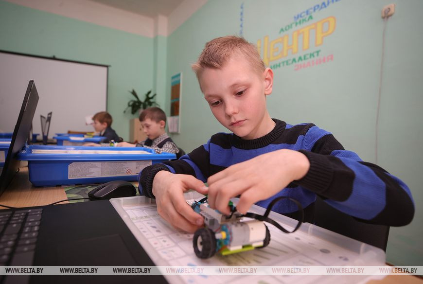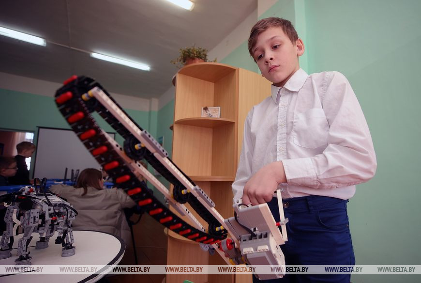 Объединение по интересам "РоботоЦентр" работает в Щучине. Кружок действует уже третий год, и аудитория для занятий роботехникой не пустеет даже на каникулах. В этом году занятия посещают 32 человека, в большой компании юных техников только две девочки. Начинают дети с вентилятора, а заканчивают масштабными моделями самолетов и огромных животных. Ребята собирают модели на специальном конструкторе, пишут для нее алгоритмы и программируют на ноутбуке или планшете. От занятия к занятию они переходят от простых к более сложным задачам. Корреспонденты БЕЛТА тоже сделали свои первые шаги в робототехнике.