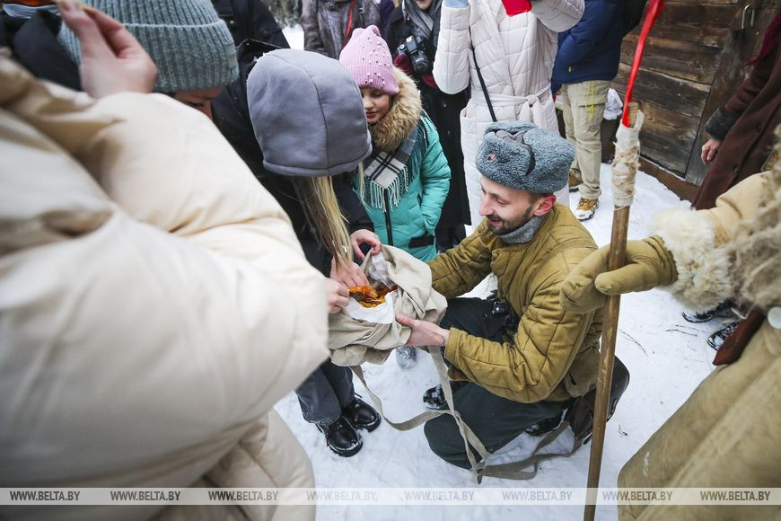 На этом сюрпризы не закончились. Проведя достаточно времени на свежем воздухе, гостям предложили согреться ароматным чаем на травах и угоститься пряниками. У этого лакомства тоже есть своя новогодняя история. Дело в том, что в партизанском отряде в Хованщине оказалась девушка Мария, которая до войны работала пионервожатой в одной из школ Бреста. Она предложила организовать праздник с елкой и подарками, жители лагеря ее поддержали.