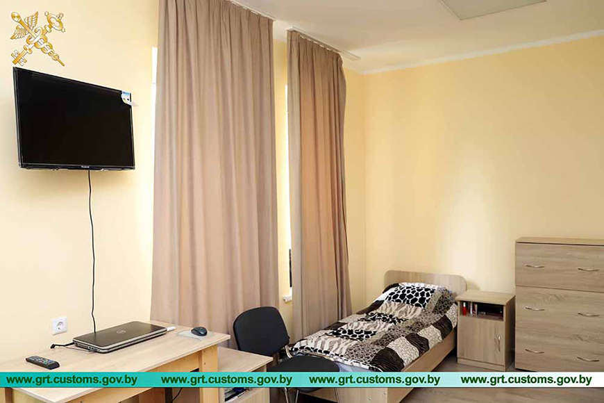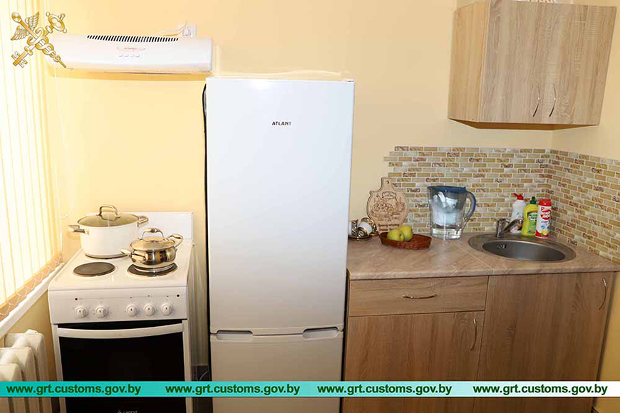 Проект по переоборудованию административного здания в общежитие реализован за счет собственных средств Гродненской региональной таможни. "Провели внутреннюю перепланировку здания, выполнили отделочные работы, полностью заменили полы и потолки, дверные и оконные блоки, инженерные сети и оборудование. Здание обеспечено системой центрального теплоснабжения, холодного и горячего водоснабжения. Помещения оснащены необходимой техникой, в здании оборудованы кухни, бытовые комнаты, тренажерный зал", - рассказали в ГТК.