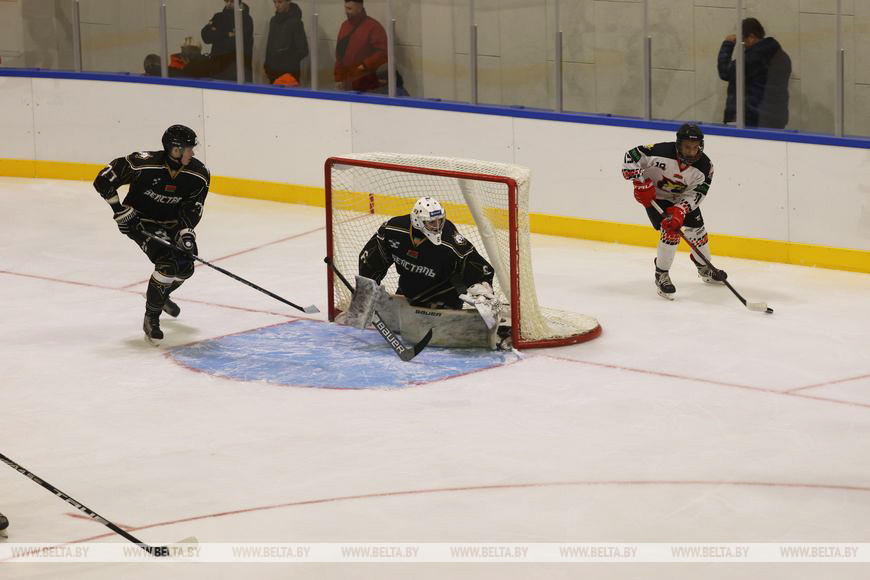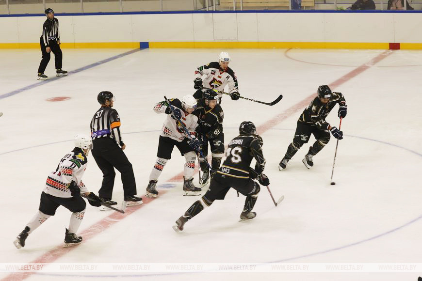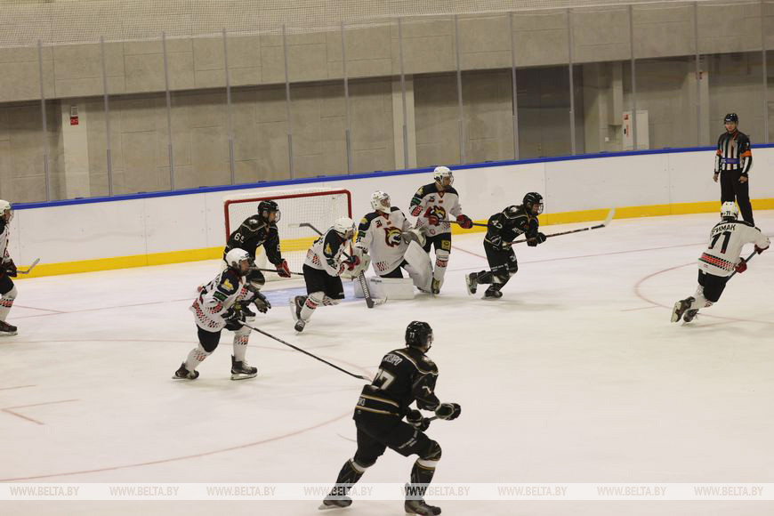 После церемонии открытия на новой площадке скрестили клюшки хоккеисты команд "Белсталь" (Жлобин) и "Рысь" (Гомель).-0-