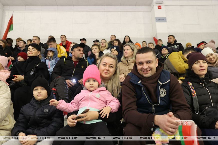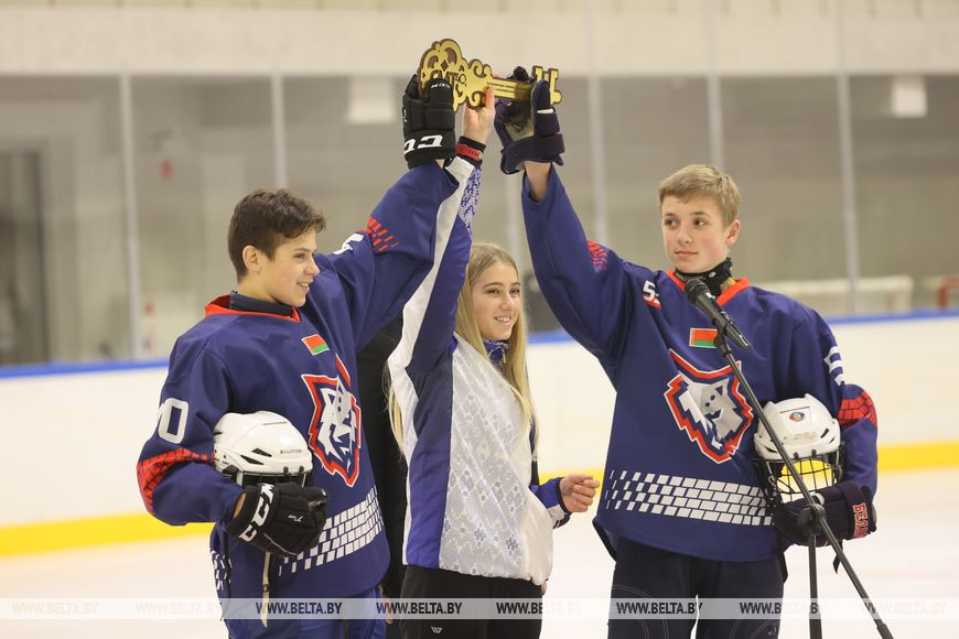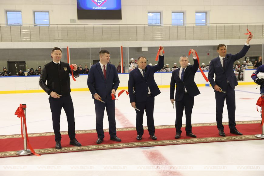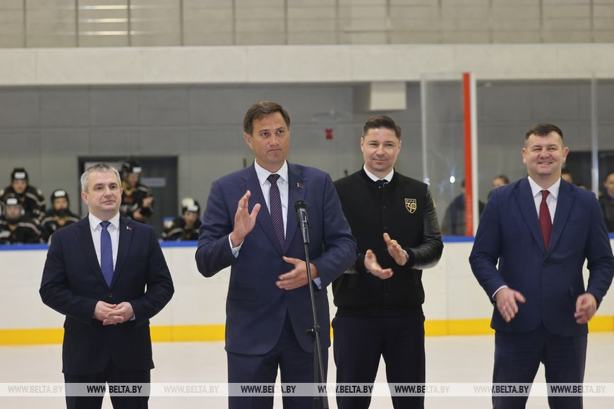 Слова поздравлений с праздником и открытием важного объекта адресовали заместитель министра спорта и туризма Александр Барауля и председатель Федерации хоккея Александр Богданович, помощник Президента - инспектор по Гомельской области Сергей Бартош.