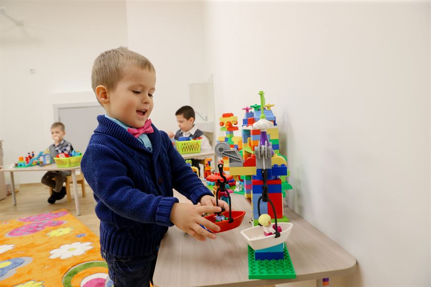 Сад рассчитан на 230 мест, в нем две ясельных группы по 15 малышей и 10 групп по 20 детей. Все они уже сформированы, но учреждение будет запускаться поэтапно. Сейчас дети на адаптации, чтобы и малыши, и мамы спокойно вошли в воспитательный процесс, а к концу года садик выйдет на полную мощность.