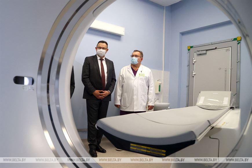 "Сегодня в областной клинической больнице открылся небольшой, но важный функциональный кабинет, - подчеркнул министр здравоохранения Дмитрий Пиневич. - С появлением современного аппарата рентгеновской компьютерной томографии на порядок повышается качество предоставления медицинских услуг. Обследование пациентов становится более информативным и точным. Приобретение нового аппарата стало результатом реализации комплексного пятилетнего плана оснащения учреждений здравоохранения медицинским оборудованием. Важно, что высокотехнологичные виды медицинской помощи приходят в областные центры".