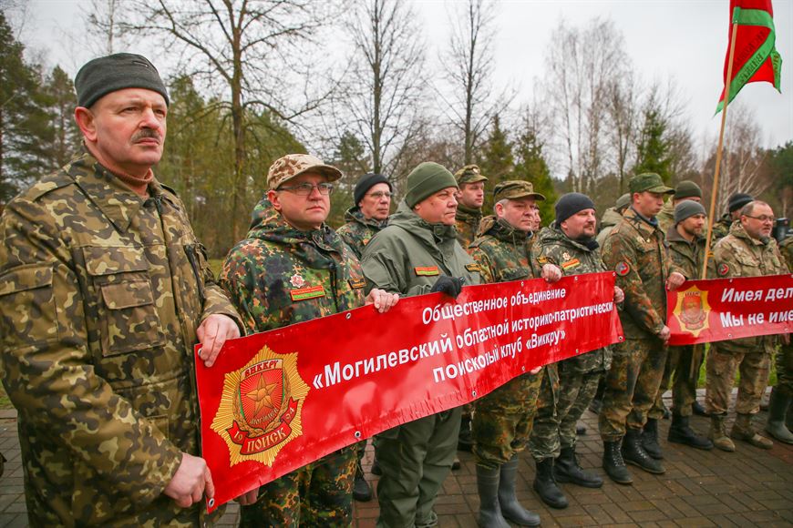 Участниками поисковых работ стали представители клуба "Виккру", 52-го отдельного специализированного поискового батальона Министерства обороны, курсанты Могилевского института МВД и учащиеся школ Могилева и Могилевского района. Открыли Вахту Памяти у самого мемориала - здесь прошел торжественный митинг.