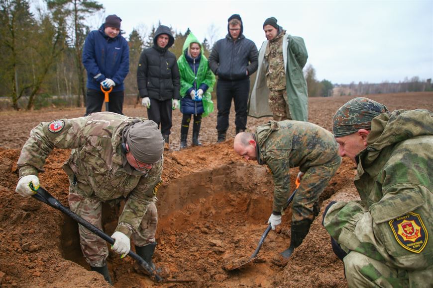 Одним из участников поисковых работ впервые стал курсант Могилевского института МВД Михаил Шахназаров. "Меня с детства учили патриотизму и любви к Родине. Я сам из Бреста, и в каждый День Победы мы ходили с семьей в Брестскую крепость, чтобы почтить память погибших, посмотреть парад. Я уверен в том, что каждый белорус должен любить, знать и помнить историю своей страны. Это важно, ведь сейчас в мире происходит что-то страшное, например, популяризация нацизма. А с такими вещами можно бороться только делом. Потому я сегодня здесь", - поделился молодой человек.