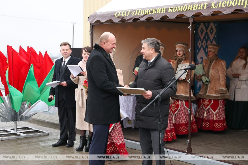 В церемонии открытии объекта приняли участие заместитель министра сельского хозяйства и продовольствия Владимир Гракун, председатель Пинского райисполкома Игорь Брилевич.-0-