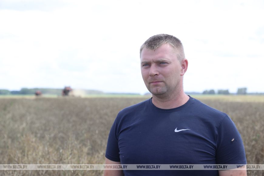 В экипаже с ним старшим комбайнером работает Иван Кравчук. Он продолжает семейную династию. Помимо него, в этом хозяйстве трактористом работает отец, животноводом - мама, водителем - младший брат. "Когда в свой первый сезон пришел на комбайн, мне было 16 лет. С отцом работал. Четыре сезона был помощником, и вот уже шестой сезон - комбайнер. Мы сеем, ухаживаем ради будущего урожая. Хочется убрать качественно, чтобы наш труд не прошел зря. Смотришь, что сам сделал, как агрономы отработали, - и приятно на душе. Но это только начало уборочной. Пока, вроде бы, неплохо, а дальше видно будет. Погода подвела: где-то подмочило, где-то засушило", - посетовал механизатор.