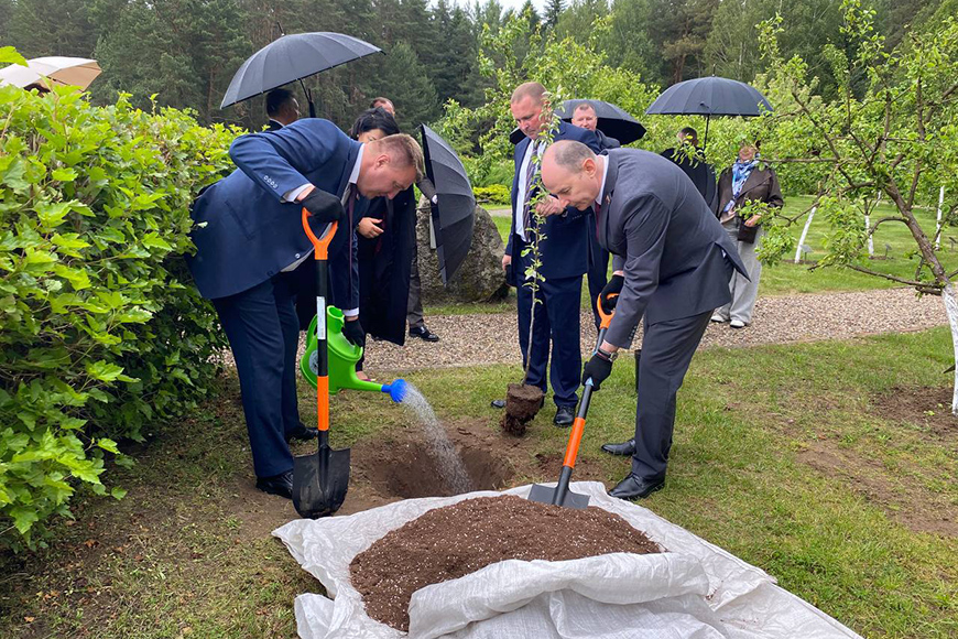 Глава области посетил санатории "Спутник", "Нарочь", "Сосны", оценил материально-техническую базу здравниц, познакомился с перспективами их развития. В экскурсионно-туристическом комплексе "Аптекарский сад" председатель облисполкома посадил на Аллее почетных гостей яблоню.