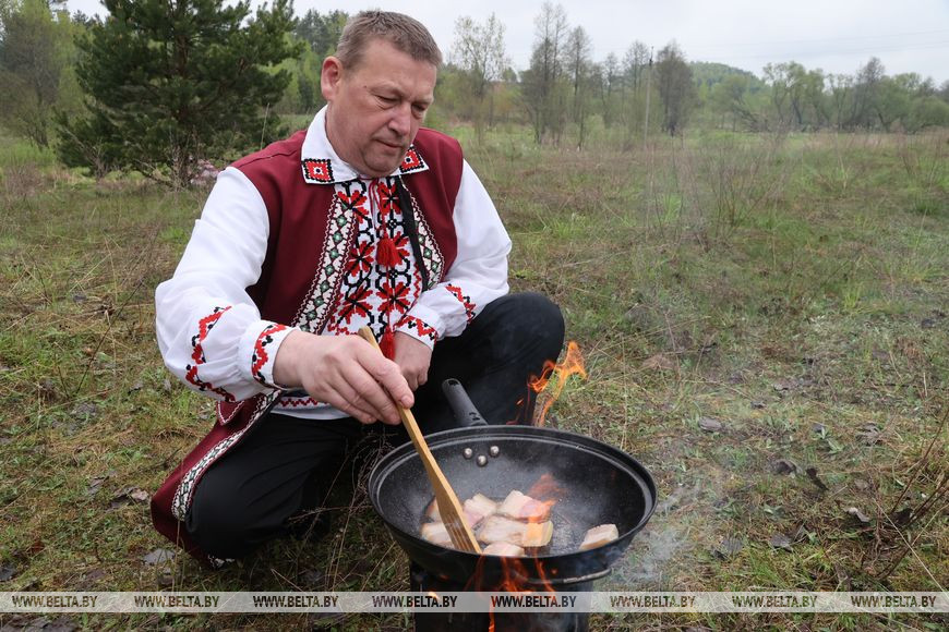 В Могилевском районе сделали реконструкцию народного праздника Юрьев день, который носит название в честь Георгия Победоносца или по-простому Юрия, Егория. Этот святой считается покровителем домашних животных, ему молились, чтобы защитить поголовье от хищников, падежа и болезней, получить хорошие удои и привесы. На Юрье сельские жители проводили обряд первого выгона скота - коров омывали святой водой и выводили в поле. Сам же пастух должен был обязательно обойти с молитвой свои посевы и умыться утренней росой, а после угоститься колотухой - омлетом с салом, приготовленном на открытом огне. Неотъемлемой частью праздника стали гадания на судьбу, молодежные гуляния и хороводы. Корреспонденты БЕЛТА также побывали на этом необычном празднике.