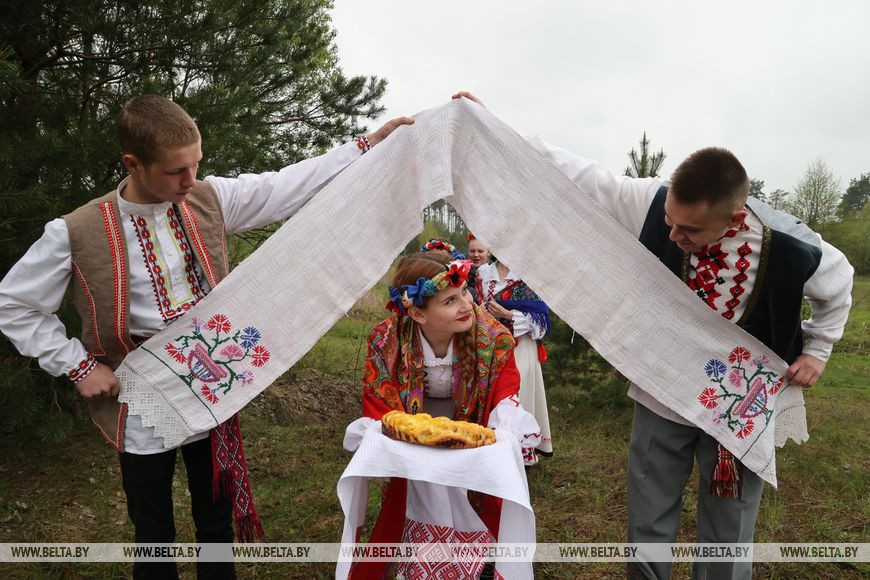 "В этот день глава семьи вставал очень рано и выходил с накануне испеченным караваем на свой участок, где посеяны озимые, - рассказала хормейстер Могилевского районного центра культуры Ирина Яковлева. - Он три раза обходил свое поле с молитвой - читал "Отче наш" и просил хорошего урожая. Когда доходил до последней межи, ложил каравай в озимые, чтобы проверить, прячется ли он в подросших молодых посевах. Если да - в этом году дом будет богат хлебом. Затем хозяин умывал лицо росой и приговаривал: "Добрая раса - будзе ў дастатку аўса". После обряда каравай попадал на утренний стол, и вся семья начинала со сдобного кусочка свой завтрак".