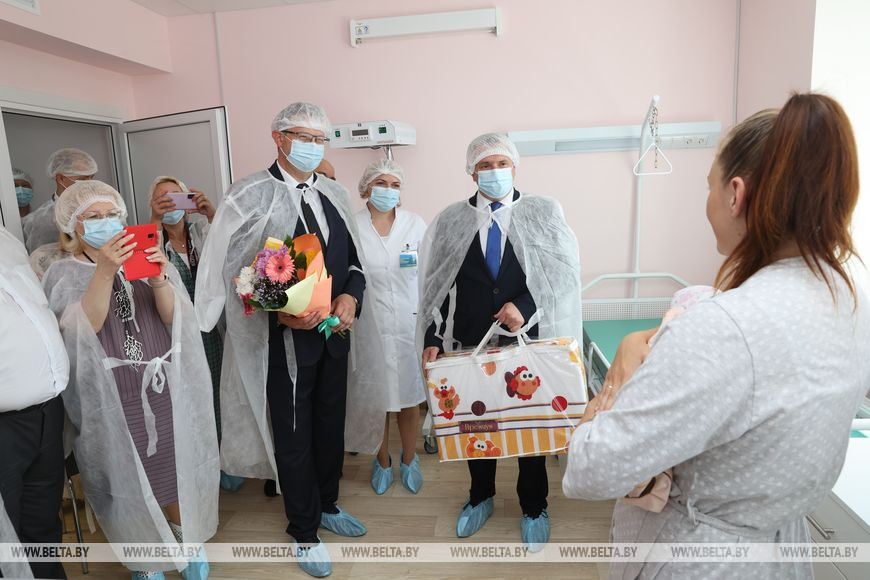 После церемонии открытия Иван Крупко и Дмитрий Пиневич поздравили счастливую маму Ольгу, дочь Милана которой стала первым рожденным ребенком в обновленном роддоме. "Пусть в вашей семье все будет хорошо. Здоровья вам. И приезжайте в роддом за братиками и сестричками", - пожелал губернатор.