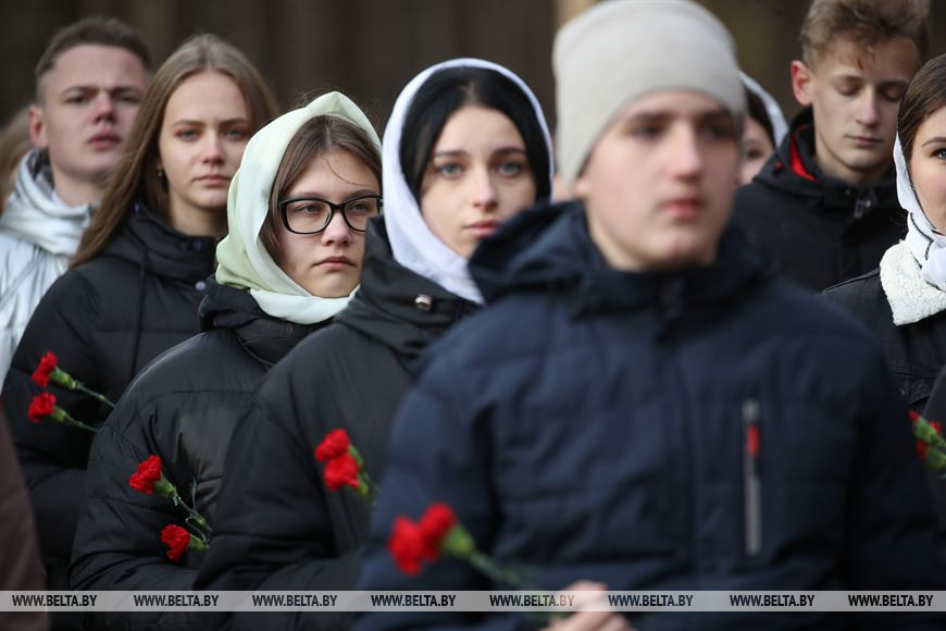 К месту события участников мероприятия вела Дорога памяти и скорби, по которой сегодня прошли более 1,5 тыс. человек. На всем протяжении пути звучали колокола, каплями крови краснели гвоздики в руках школьников.