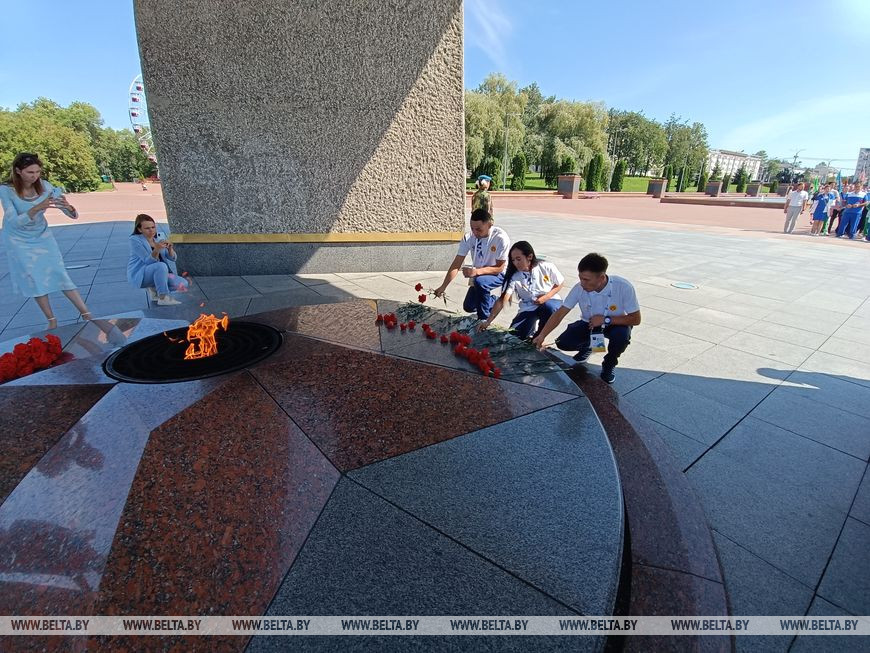 Спортсмены, судейская команда, тренеры, представители местной власти и неравнодушные горожане, присоединившиеся к митингу, возложили цветы к монументу в честь воинов-освободителей, партизан и подпольщиков Витебщины. Гостям областного центра рассказали о значении этого памятника и о состоянии, в котором оказался Витебск после войны. Город лежал в руинах, и спустя почти 80 лет он превратился в современный культурный, туристический и образовательный центр, где сейчас гостеприимно встречают участников II Игр стран СНГ.-0-