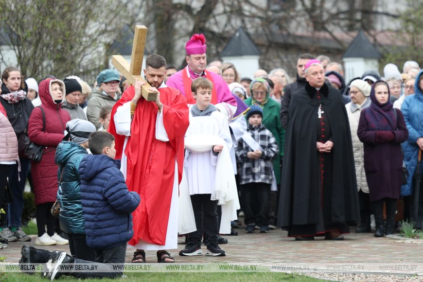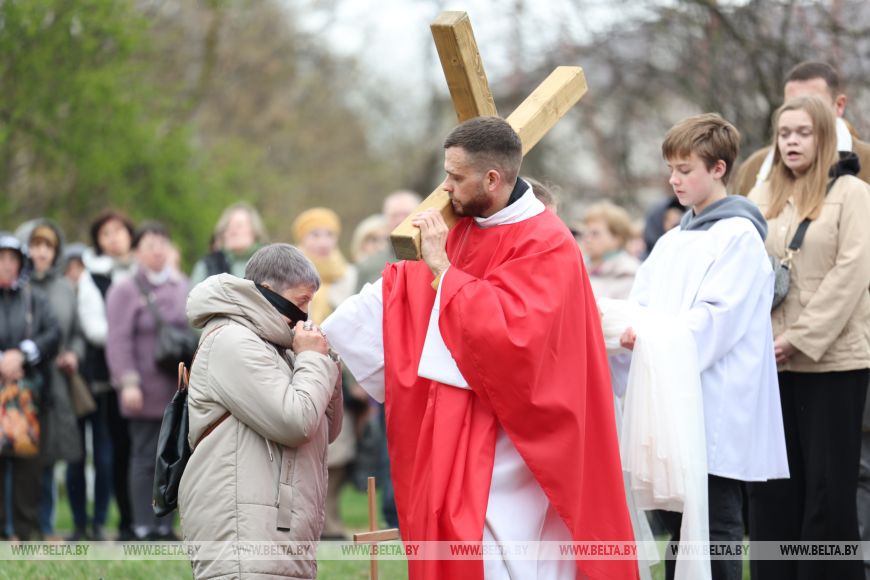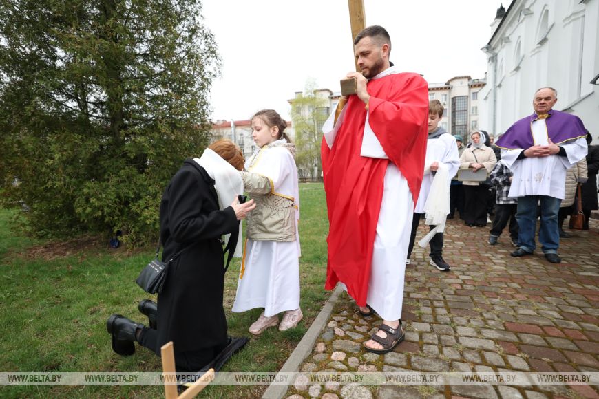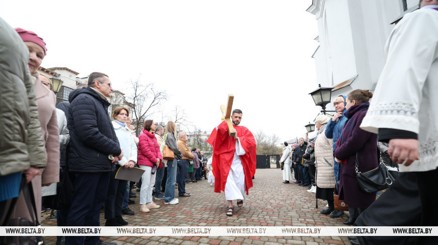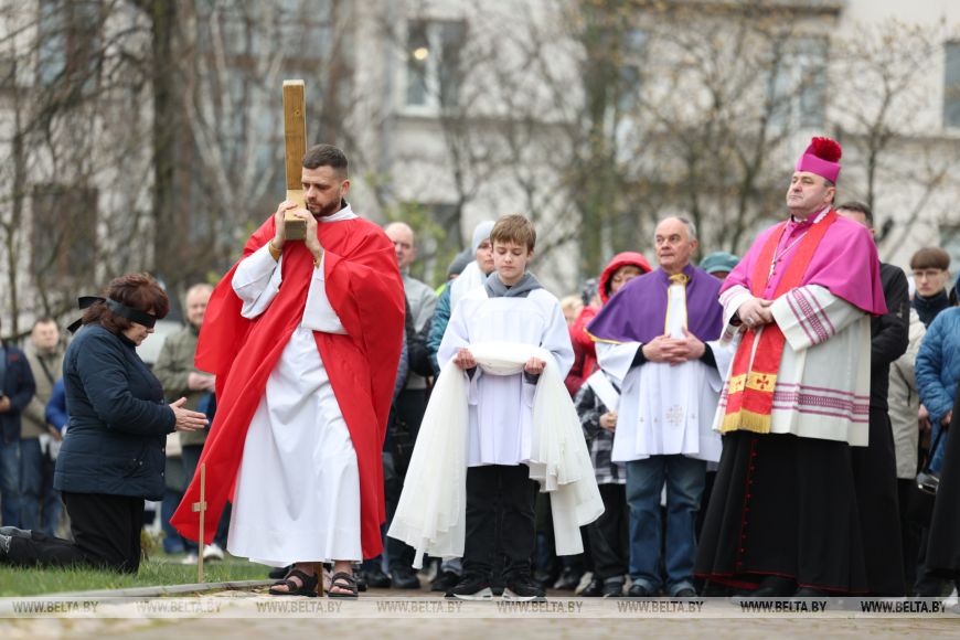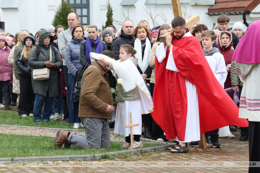 Присоединиться к службе и совместной молитве могли все желающие. После окончания Крестного хода уже в костеле состоялась святая месса.Как пояснил ксендз Юрий Ясевич, Крестный ход является особым богослужением, во время которого рассуждают над муками Христа по пути на Голгофу. Верующие проходят 14 остановок, которые напоминают о ключевых моментах, в том числе осуждение на смерть, встречу матери Марии, помощь Симона Киринейского, который нес Крест часть пути, встречу святой Вероники, которая утерла лицо Спасителя от пота, трижды падение под тяжестью креста, распятие, положение во гроб.