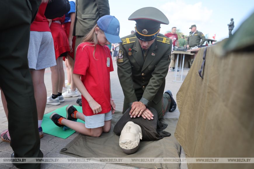 Мишу, старшего сына Анны, впечатлили танки Т-34: "Очень хотел посмотреть на них вживую. Знаю, что танкам уже очень много лет, но они все равно впечатляют. Очень круто! А еще можно было потрогать оружие".Посмотреть, что приготовили для Смолевичей организаторы акции "Марш Победы", пришла и Людмила Мурашко с девятилетним сыном Тимофеем. "Мы узнали про эту акцию в интернете и решили прийти. Узнали, что на площади будут легендарные танки, и не могли пропустить такое. Особенно ребенку было интересно - не могла отвести его от выставки техники", - сказала Людмила.