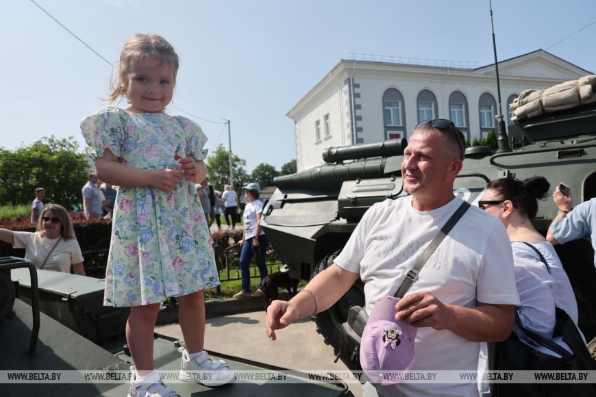 Посмотреть на легендарные танки жительница Смолевичей Анна Петровская пришла с двумя сыновьями - семилетним Мишей и пятилетним Максимом. Женщина призналась: мальчикам было интересно посмотреть на военную технику вживую. Раньше они видели ее только по телевизору, когда смотрели трансляции военных парадов. А еще муж Анны играет в местном оркестре, и семья пришла его поддержать."Мальчикам интересна военная тематика, поэтому не могли не прийти. И мужа поддержать - он сегодня выступает. На мой взгляд, получился очень яркий и разнообразный праздник для всех жителей города. Мне понравилась и выставка, и концерт", - поделилась впечатлениями Анна Петровская.