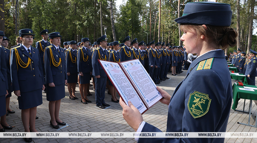 "Сегодня вы делаете важнейший шаг в своей профессиональной и жизненной судьбе - приносите присягу. Этот день навсегда останется в вашей памяти как символ чести, верности и высокой ответственности перед государством и обществом. Вы вступите в ряды тех, кто стоит на страже экономической безопасности страны, охраняет ее интересы и укрепляет международный авторитет", - обратился к молодым сотрудникам заместитель председателя Государственного таможенного комитета Дмитрий Радивоник.