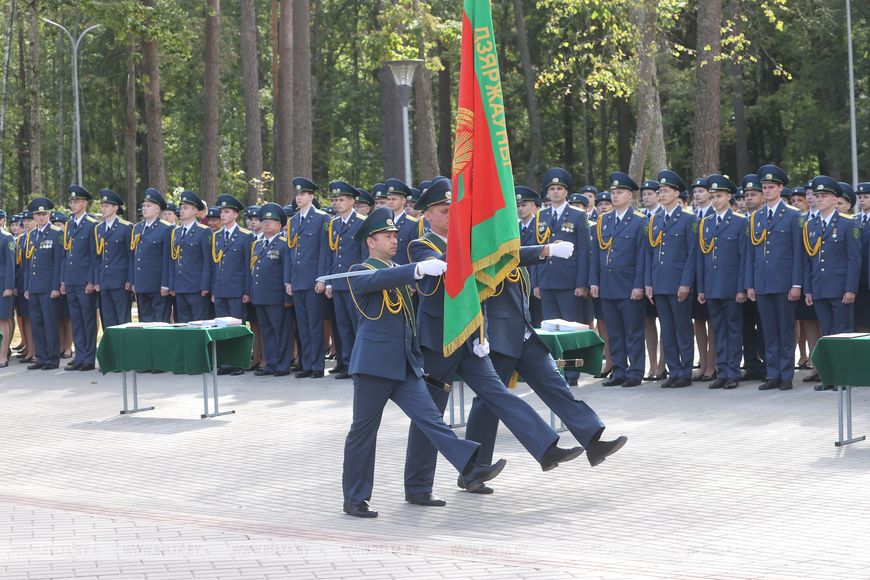 "Сегодня вы, молодые сотрудники, словно подхватываете эстафету. Тогда защитники Отечества оберегали Родину от врага, с оружием в руках. Вы будете защищать экономические интересы Беларуси, охранять ее границы от нелегального ввоза, от контрабанды, от всего, что может нанести ущерб нашему государству. Очень важная и ответственная миссия", - сказал он.