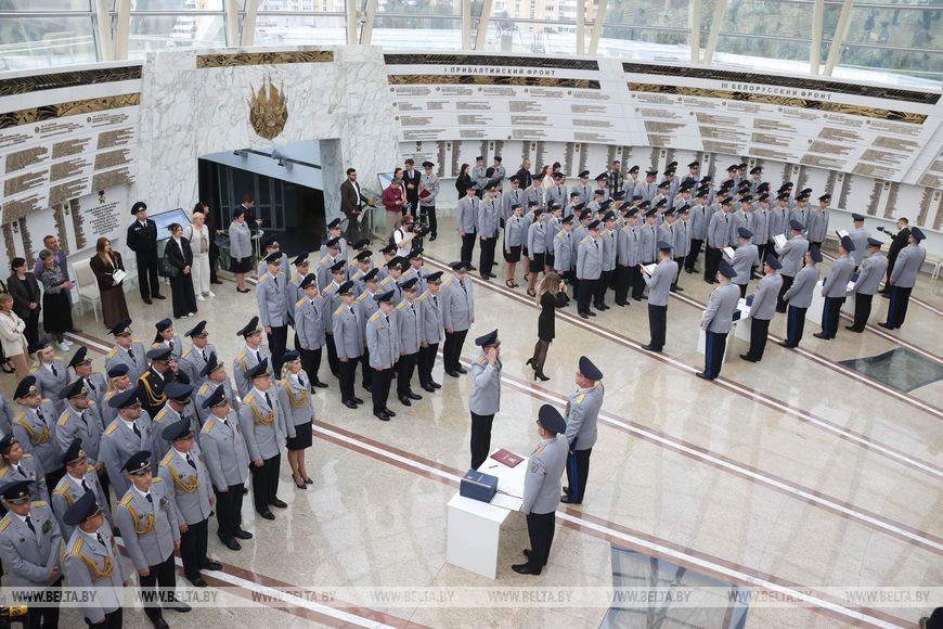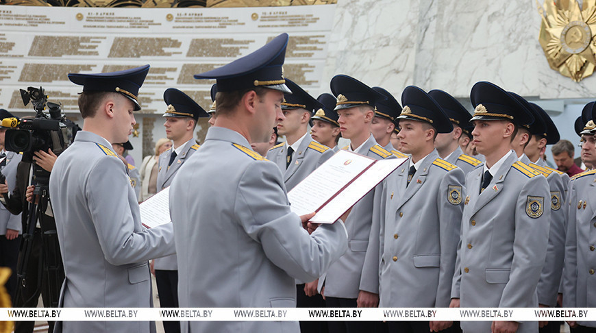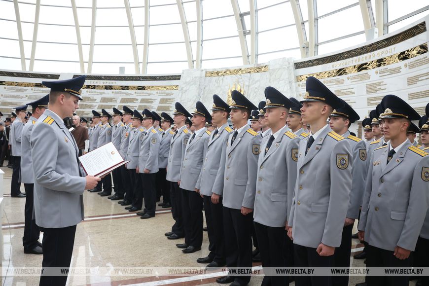 Среди тех, кто сегодня произносил слова присяги, - следователь Пуховичского районного отдела СК Владислав Ткачев. Он рассказал, что еще в 7-м классе школы выбрал для себя путь службы. "Сначала я хотел поступать в Военную академию, а ближе к окончанию школы понял, что мне ближе Академия МВД. Сначала пришел в милицию, потом в Следственный комитет", - сказал Владислав Ткачев.