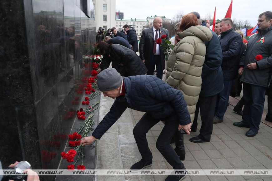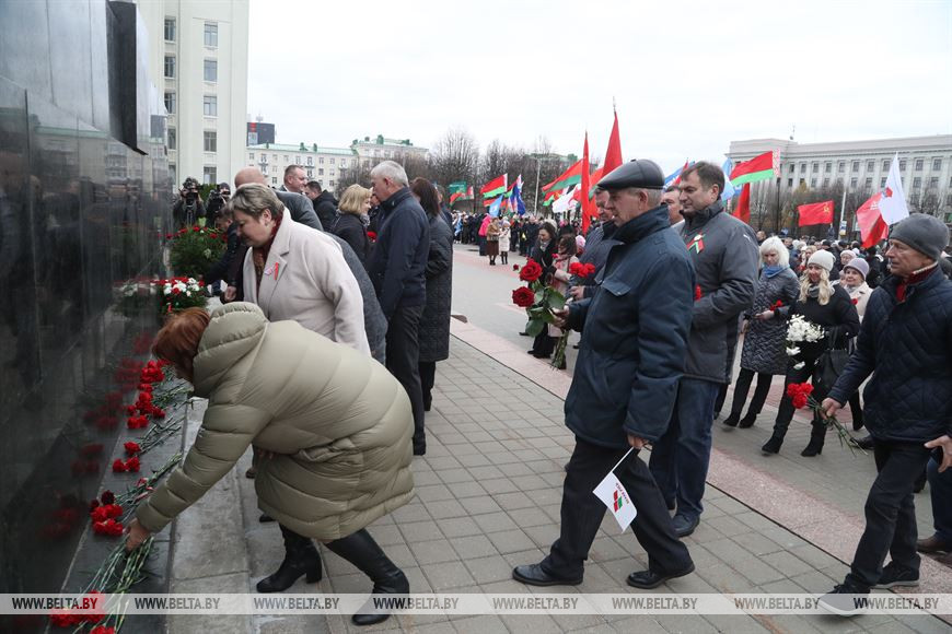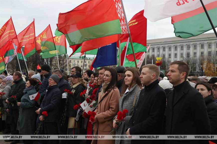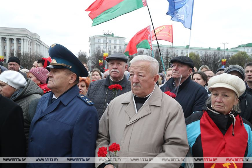 7 ноября, Могилев /Корр. БЕЛТА/. Около тысячи могилевчан стали участниками митинга, посвященного празднованию Дня Октябрьской революции. На площадь Ленина люди приходили трудовыми, учебными коллективами, семьями и с друзьями, передает корреспондент БЕЛТА.