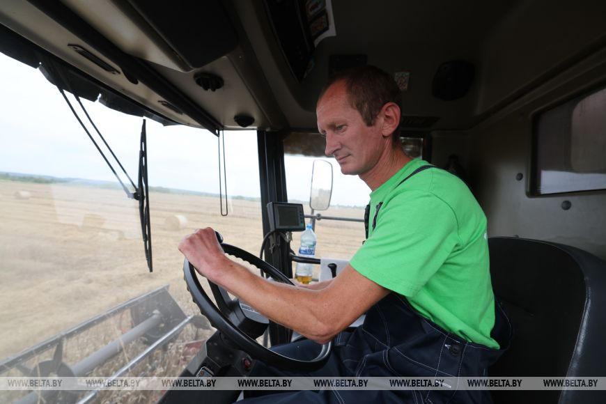 Мужчина делится, что непривычно было впервые садиться за руль комбайна, он кстати, убирает на КЗС-1218. "На зерноуборочной технике работать было сложно поначалу. Но со временем руку набил. Погодные условия сейчас не очень дают развернуться. Хотелось бы быстрее и больше работать. Пока я иду в своем самом лучшем темпе за все время на жатве, но стремление работать еще лучше, конечно же, есть. Тут не только погода роль играет, а и качественная подготовка техники в начале сезона", - поделился Иван Кардаш, добавив, что очень гордится тем, что причастен к уборке хлеба для белорусов.