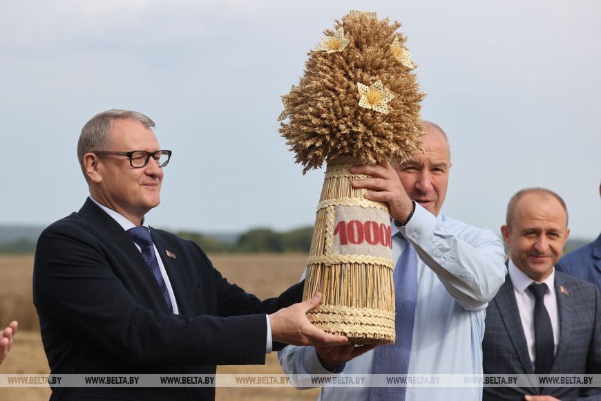 Первый зампредседателя облисполкома дополнил, что жатва 2025 года сопровождается обильными осадками, что усложняет уборку. И несмотря на это, экватор уборочной кампании в регионе успешно пройден. По его словам, в этом году по абсолютной урожайности лидирует Кореличский район, второе место - у Гродненского. Берестовицкий же - лидер по темпам жатвы.