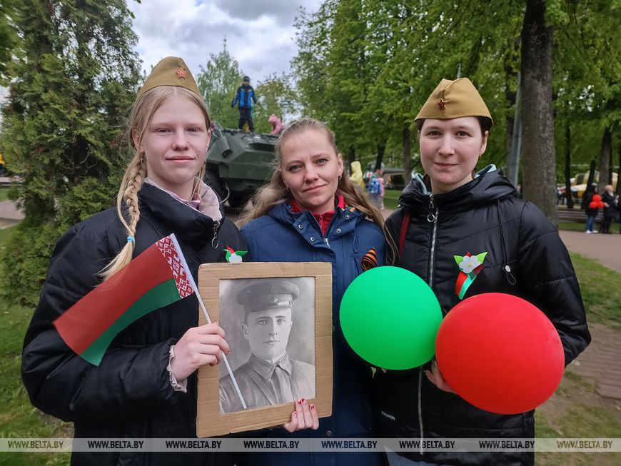 В семейном архиве хранится фото прадеда Маши по папиной линии. До войны он был учителем белорусского языка и литературы, в 1941 году вместе с отцом и братом в первые дни войны отправился на защиту Бреста. Все трое там и полегли. К сожалению, о нем осталось очень мало сведений, и благодарные за подвиг потомки хотят отыскать побольше информации о нем, потому что родные даже не знают звания павшего героя. "Мы все эти истории, а их немало, храним, оберегаем и передаем детям, внукам, рассказываем, что знаем. Это часть нас, и как только соберем все воедино, то составим свою интересную и насыщенную летопись. Она будет переходить по наследству, чтобы все знали, какой ценой наши деды и прадеды отвоевали Победу", - сказала Снежана Витковская.Для малышей и взрослых на сегодняшнем празднике настоящей сенсацией стала выставка военной техники и оружия на площади Победы. Мальчишки и девчонки выстраивались в очередь, чтобы сфотографироваться рядом с внушительными экспонатами, залезть в кабину авто цвета хаки и сделать селфи рядом со спецназовцами, облаченными в камуфляжные костюмы. В парке Победителей гости и жители города наслаждались творческой атмосферой, выступлением оркестра, а также посещали многочисленные аттракционы.