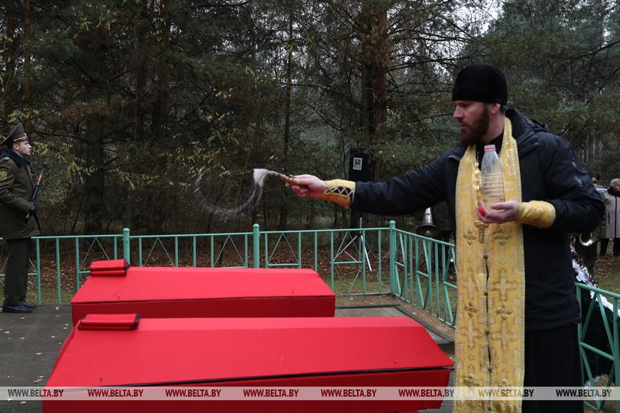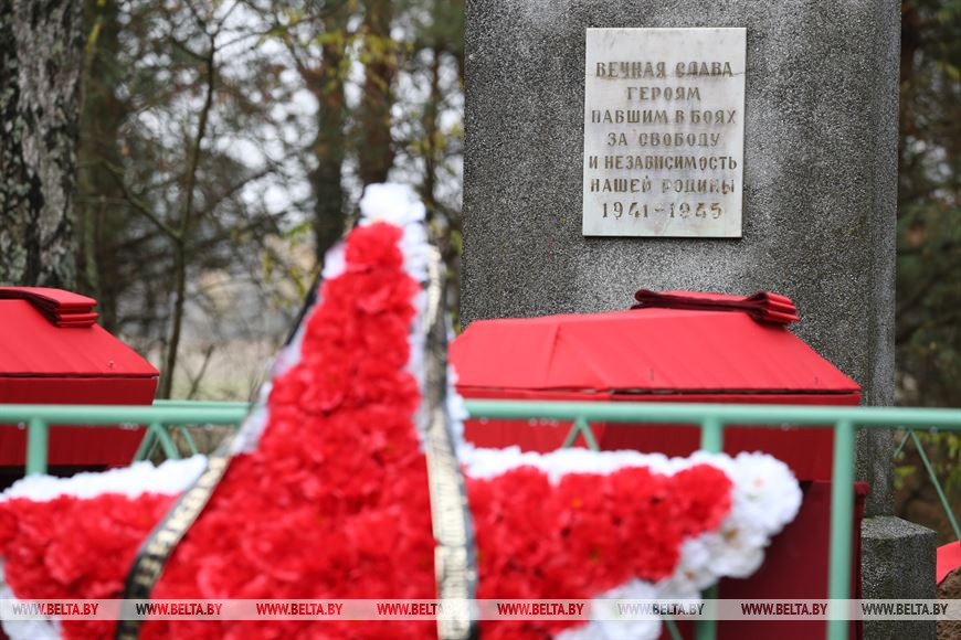 5 ноября, Могилев /Корр. БЕЛТА/. Останки девяти бойцов Красной армии перезахоронили сегодня неподалеку от деревни Роксолянка Бобруйского района. Об этом корреспонденту БЕЛТА сообщил заместитель начальника отдела идеологической работы, культуры и по делам молодежи Бобруйского райисполкома Дмитрий Веревкин.