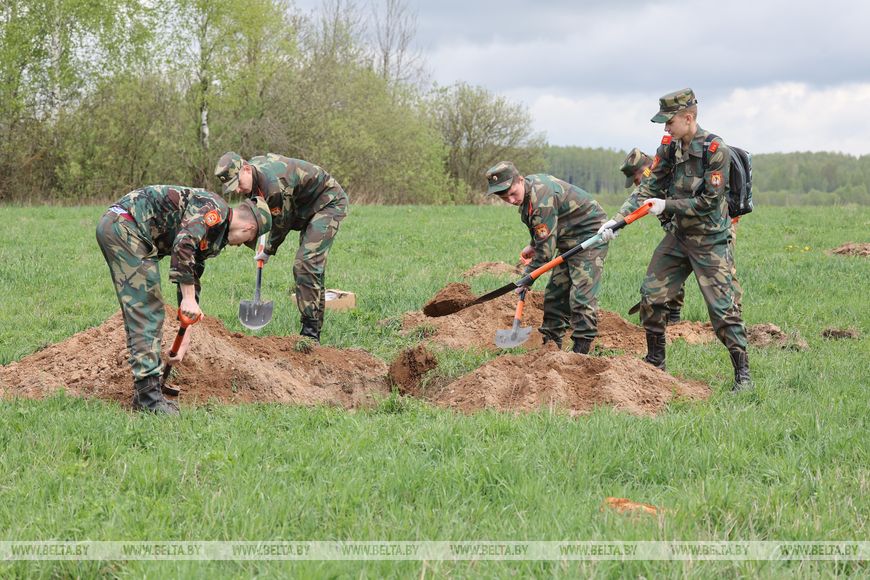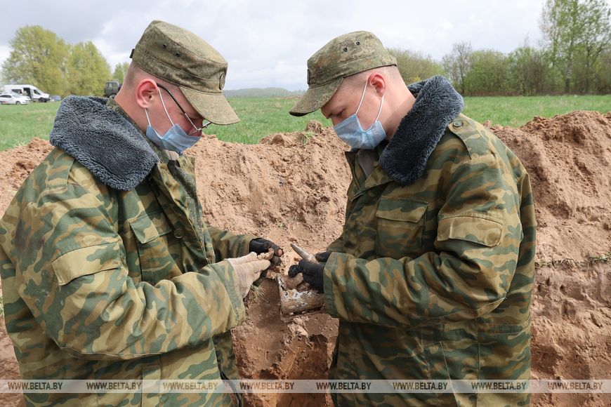 Юные поисковики при профессиональной поддержке военнослужащих 52-го отдельного специализированного поискового батальона проводили раскопки на этом месте уже не в первый раз. Здесь в 1944 году пролегал боевой путь 251-й стрелковой дивизии, которая сражалась за освобождение Витебска. Памятник воинам этого соединения с найденными при раскопках касками здесь установили 10 лет назад благодаря помощи внуков солдат, останки которых удалось идентифицировать.