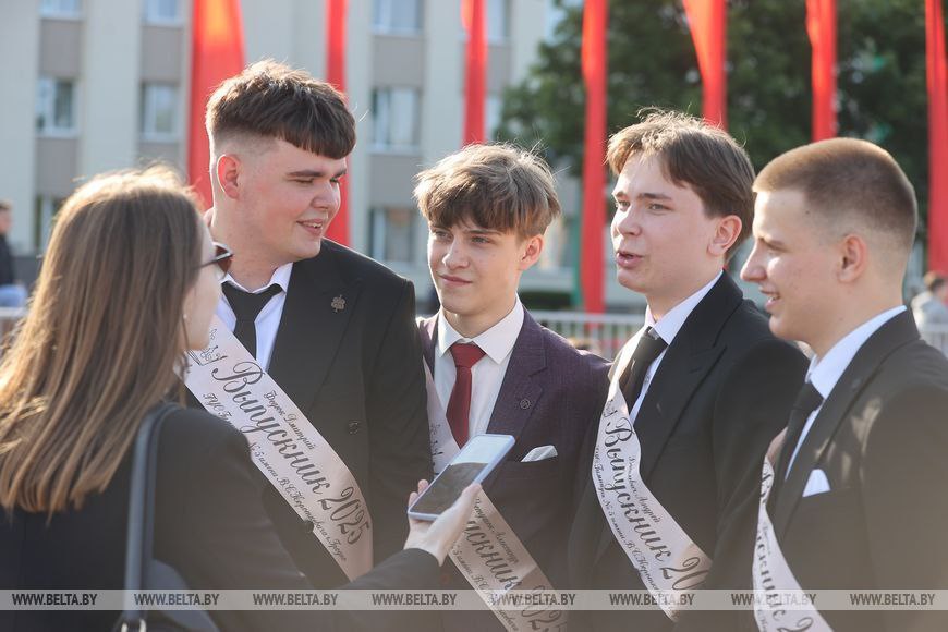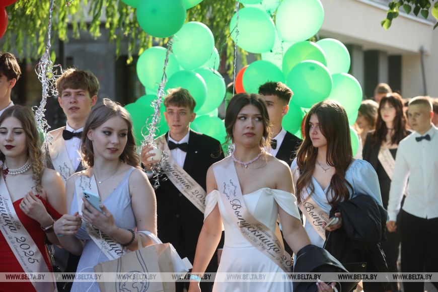 Радуется и грустит одновременно мама выпускника средней школы №3 им.В.М.Усова Татьяна Дановская. "Сын повзрослел очень быстро, выбрал для себя профессию врача, сам решил с 6 класса заниматься биологией и не оставил мечту. Жалко, конечно, отпускать ребенка своего. Хотелось бы его детство продлить. Но взросление неизбежно, поэтому хочется пожелать сыну быть уверенным в себе, всегда помнить, что мы его поддержим, мы его любим и будем рядом", - сказала она. Торжественным шествием герои дня прошли по историческому центру Гродно к Советской площади. По пути их приветствовали горожане, напутствующие их тем, что все у них получится. На открытой сцене на Советской площади подарком для выпускников стал концерт популярных и любимых молодежью исполнителей. И впереди трогательный момент, когда герои праздника все вместе споют нестареющую романтичную песню "Крылатые качели". Завершением торжества станет красочный салют.-0-