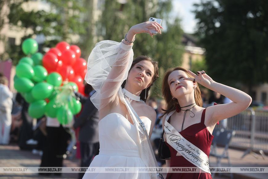 Фото на память об особенном дне, который подводит черту между детством и юностью, делают подруги Вера Морозова и Мария Дмитрук. "Взволнованы, день чудесный, погода не подвела, атмосфера прекрасная, ждем концерт. Все рады за нас, и мы за себя рады", - поделилась выпускница гимназии №3 им.О.И.Соломовой, которая планирует поступать в ГрГМУ. Выпускница гимназии №5 им. В.С.Короткевича, которая намерена стать студенткой биофака ГрГУ им.Я.Купалы, дополняет: "Хочется сегодня всем нам пожелать никогда не сдаваться и идти к своей цели".
