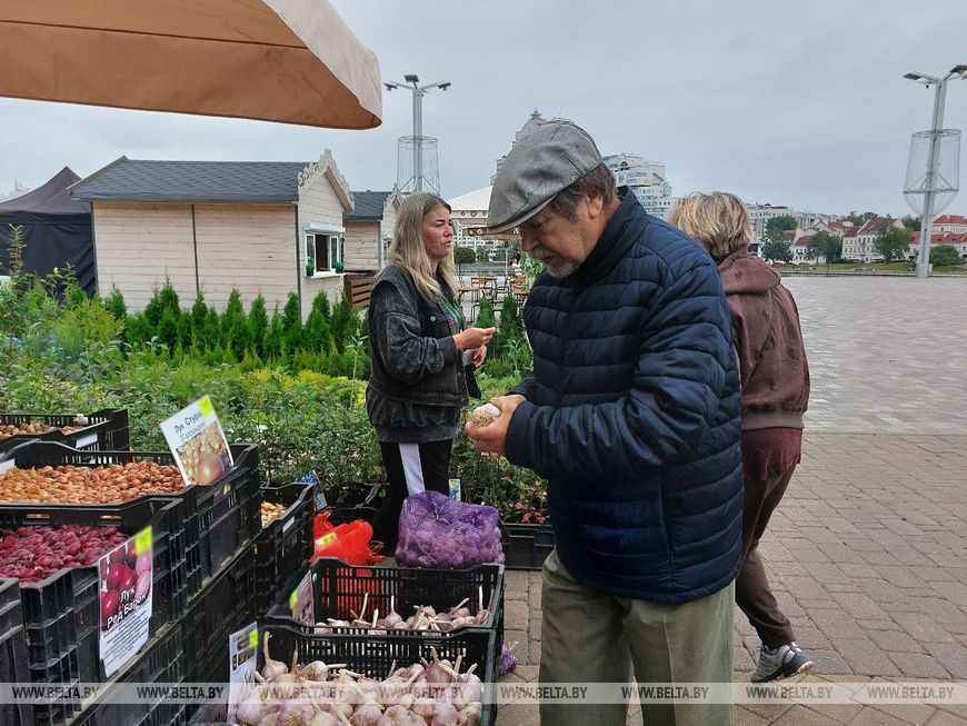 В конце ряда специально для покупателя могут выловить свежего карпа или щуку - живую рыбу упаковывают прямо из воды и отдают за Br8/кг. Посетитель Павел Войтик каждый год ждет ярмарку с нетерпением. "Не было случая, чтобы я пропустил ярмарку. Сидеть дома - скучно, а здесь много людей, с которыми можно пообщаться. У меня есть своя дача, я многое выращиваю сам: помидор, перец и все для борща. Здесь нахожу то, что удобно для меня. Хочу купить свежую рыбу, а еще в этом году не садил капусту - планирую поискать ее в кочанах", - отметил посетитель.
