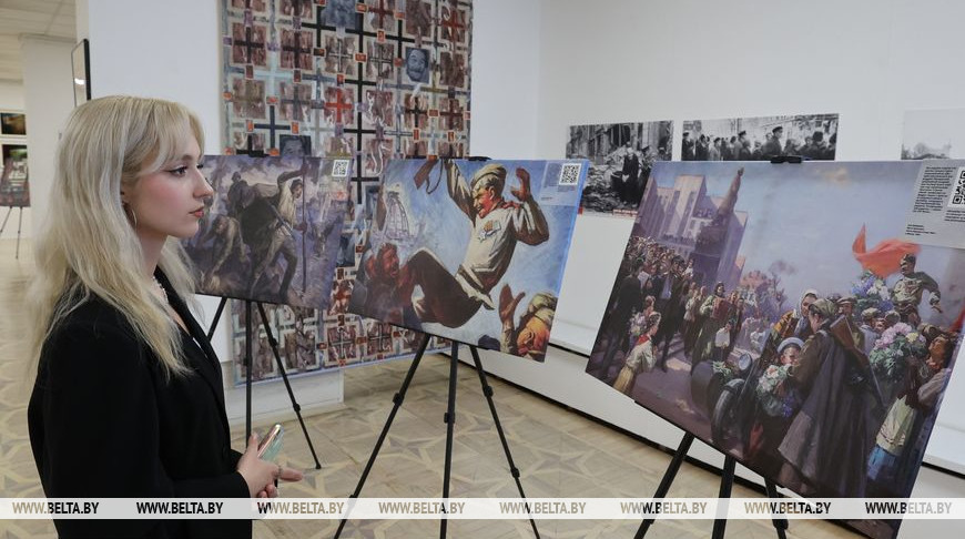 Проект является инициативой редакционно-издательского учреждения "Культура і мастацтва" и реализуется совместно с Белорусским государственным музеем истории Великой Отечественной войны и Белорусской государственной академией искусств. Директор учреждения Наталья Кузнецова рассказала корреспонденту БЕЛТА, что на выставочной площадке в фестивальной столице представлены работы, которых еще не видел читатель журнала "Мастацтва". "В Витебске мы привезли 24 полотна. Среди них есть такие, которые еще не печатались на страницах нашего издания. Этот проект работает уже с 2024 года. Изначально он был приурочен к 80-летию освобождения Беларуси от немецко-фашистских захватчиков. Он продолжился в этом году. Сейчас проект также посвящен 80-летию Великой Победы", - отметила она.