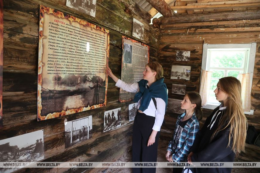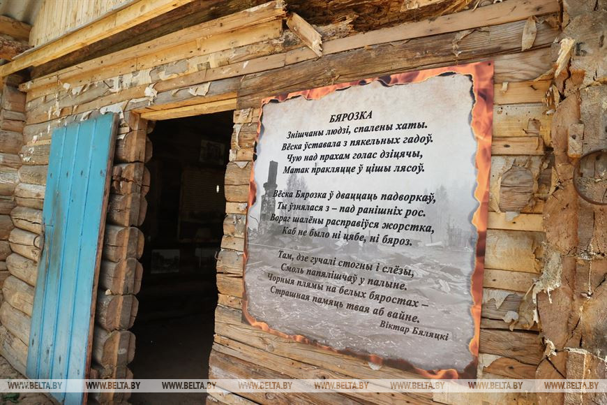 "Здесь неподалеку болота, а потому весной и осенью пройти очень сложно. Мы сделали небольшой деревянный мостик, чтобы можно было добираться до Березки в любую погоду, - рассказывает председатель районного Совета депутатов. - Работы в этом месте стали проводить в прошлом году. Сначала собирали большие субботники, чтобы расчистить территорию. В деревне остался всего один дом, но он был в очень плачевном состоянии: прогнили стены и крыша, не было окон. Но мы решили его восстановить и сделать в нем небольшой музей, чтобы увековечить память о Березке и ее жителях, погибших в годы войны".