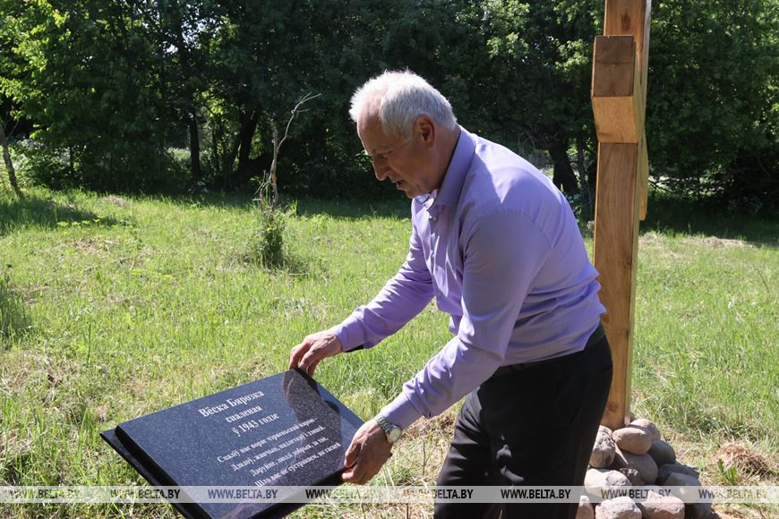 Ближе к месту, где раньше был въезд в деревню, нас встречает председатель Филатовского сельского исполкома Ильдар Степанов. "Инициатива создать такое памятное место, на мой взгляд, очень важная. Эта территория, когда мы сюда пришли в первый раз, была в плачевном состоянии. Дом - бесхозный, а потому уже стал разрушаться. Раньше он состоял из двух частей, приблизительно одинаковых по размеру. Но состояние половины дома было таким, что восстановлению не подлежало. Потому мы снесли эту постройку, а с оставшейся частью стали работать. К нам активно присоединилась молодежь актива БРСМ, школьники. Районный исполнительный комитет не остался в стороне, тоже помогает на каждом этапе. Работаем и силами сельисполкома. У нас хватает специалистов, которые и крышу помогли сделать, и забор вокруг памятного знака заменить. Это пример серьезной и неравнодушной коллективной работы. Очень здорово, что у нас такие отзывчивые люди. Наверное, для каждого белоруса тема Великой Отечественной войны остается сакральной. Мы трепетно храним память о тех событиях, о погибших белорусах. И такие совместные проекты - подтверждение не словом, а реальным делом", - сказал он.