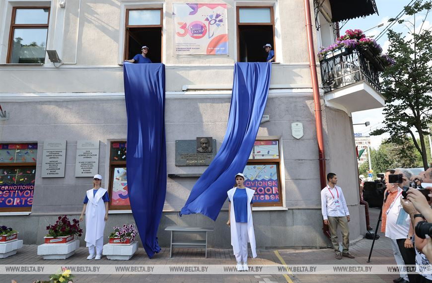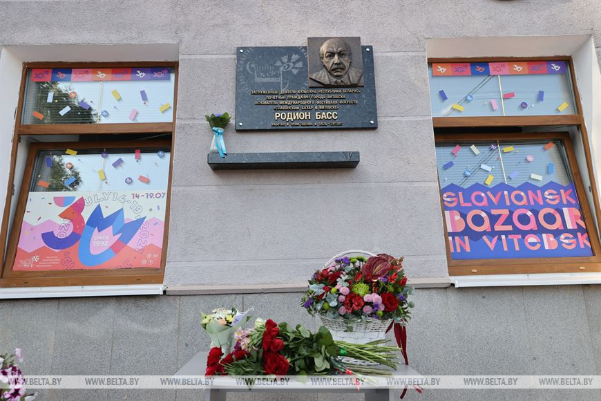 14 июля, Витебск /Корр. БЕЛТА/. Памятную доску почетному гражданину Витебска, заслуженному деятелю культуры Беларуси и основателю Международного фестиваля искусств "Славянский базар" Родиону Бассу открыли сегодня в Витебске, передает корреспондент БЕЛТА.