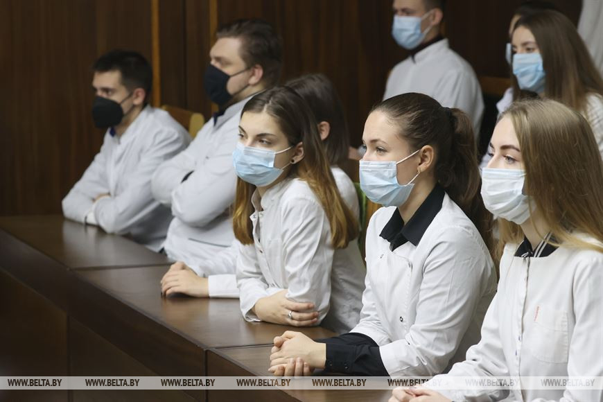 3 декабря, Гомель /Корр. БЕЛТА/. Вопросы, касающиеся пандемии коронавируса, вакцинации, распределения выпускников, обсуждались сегодня на встрече министра здравоохранения Дмитрия Пиневича со студентами Гомельского государственного медицинского университета. Об основных аспектах диалога министр рассказал журналистам, передает корреспондент БЕЛТА