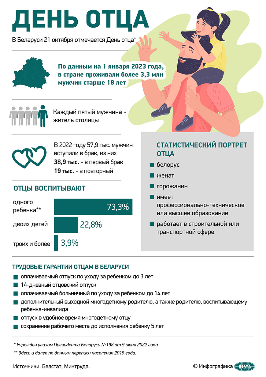 Он признался, что в череде хлопот даже не знал, что в Беларуси стали отмечать День отца, но очень рад появлению такого праздника. "На мой взгляд, такой праздник нужен. Если взять мою ситуацию, то очень нужен. Наверное, это вселяет в меня гордость и уверенность в себе, а благодаря этому и силы появляются. Горжусь быть отцом четверых детей. Хочу видеть их в будущем добрыми, умными, понимающими людьми", - резюмировал многодетный отец.
