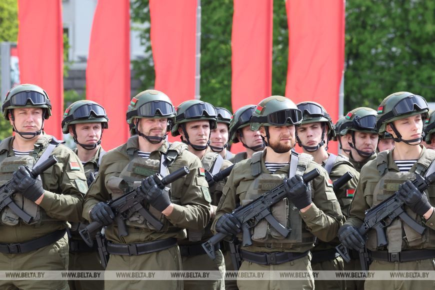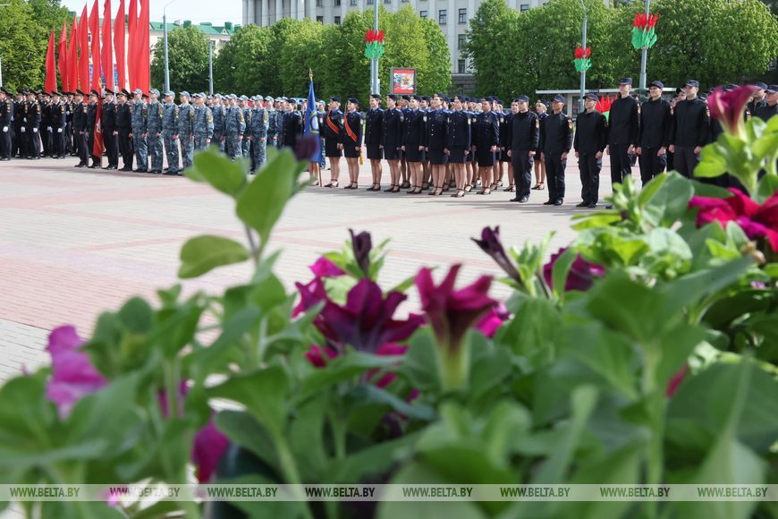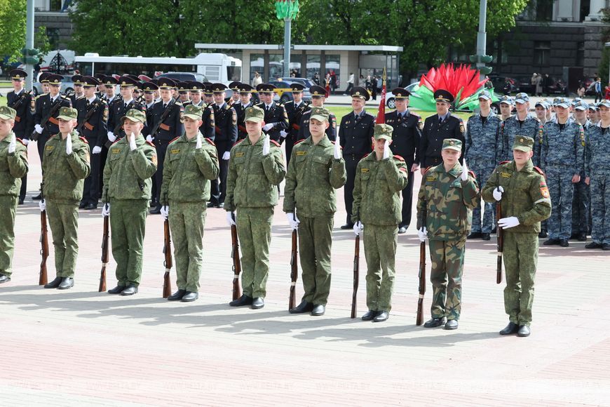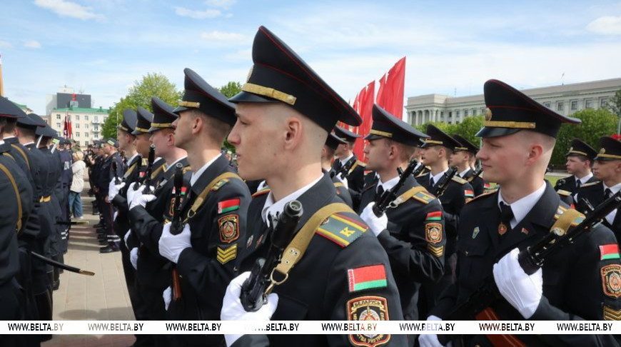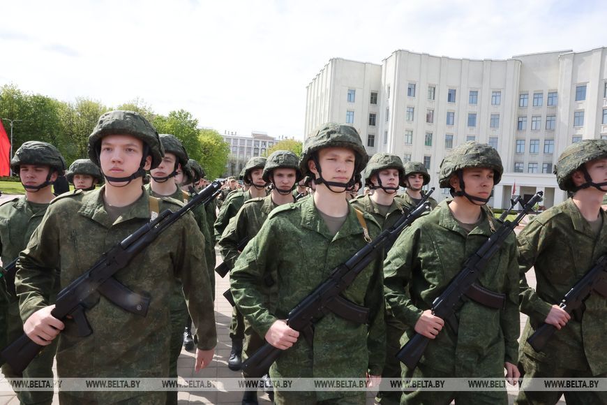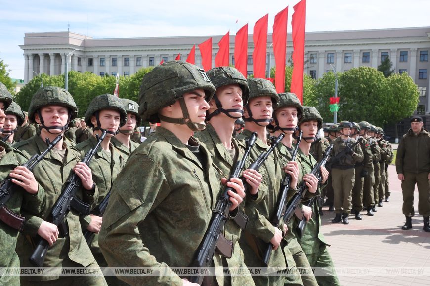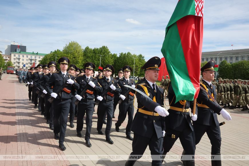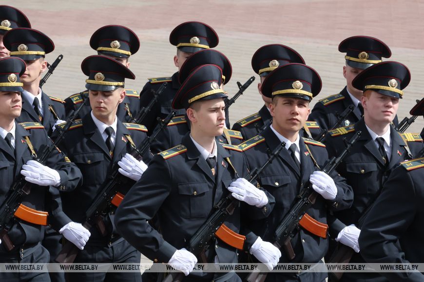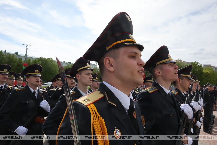 6 мая, Могилев /Корр. БЕЛТА/. Сегодня на площади Ленина в Могилеве прошла генеральная репетиция торжественного марша парадных расчетов Могилевского гарнизона.-0-