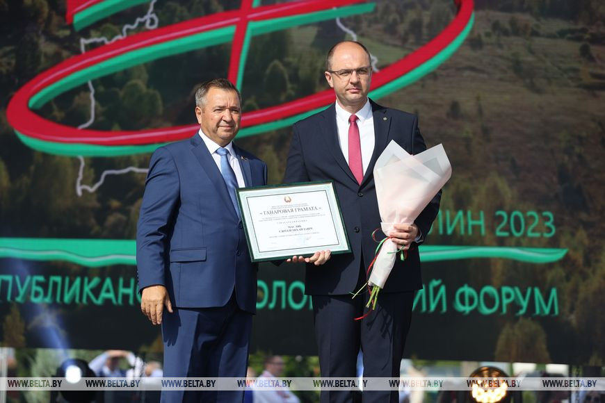 Среди почетных гостей форума также министр лесного хозяйства Александр Кулик, министр природных ресурсов и экологии Республики Алтай Айлан Сумачаков, председатель Столинского райисполкома, член Постоянной комиссии Совета Республики по экономике, бюджету и финансам Григорий Протосовицкий.