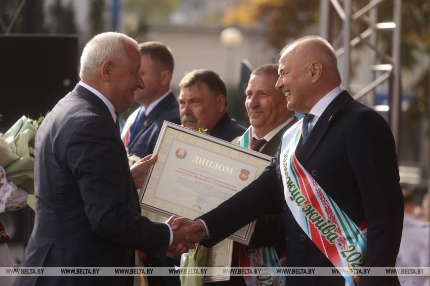 Председатель облисполкома привел и еще один любопытный факт. "Любовь к земле и профессии зарождается в первую очередь в семье. И я от души хочу сегодня сказать спасибо тем людям, которые передают уважение и преданность аграрному делу своим детям и внукам, рождая трудовые династии. Одна из них по общему трудовому стажу насчитывает - вдумайтесь! - 101 год. Основатель династии - Петр Блыщик из хозяйства "Хотиславское" работал трактористом-машинистом, сейчас на заслуженном отдыхе. Пятеро сыновей пошли по стопам отца и трудятся в родном хозяйстве, а еще две невестки и зять. Это золотой фонд сельского хозяйства, нашей земли, который мы будем всячески поддерживать", - подчеркнул Петр Пархомчик. Он также поблагодарил представителей других профессий, которые подставили плечо аграриям во время уборочной."Подводя итоги нынешней уборочной страды, мы уже думаем о будущем урожае. Уверен, что достигнутую высокую планку на будущий год мы не только сохраним, но и увеличим. Для этого у нас есть все - любовь к земле, трудолюбивые руки, современная техника и технологии, а главное - поддержка государства и нашего Президента", - резюмировал руководитель Брестской области.-0-