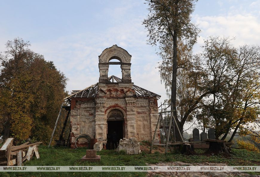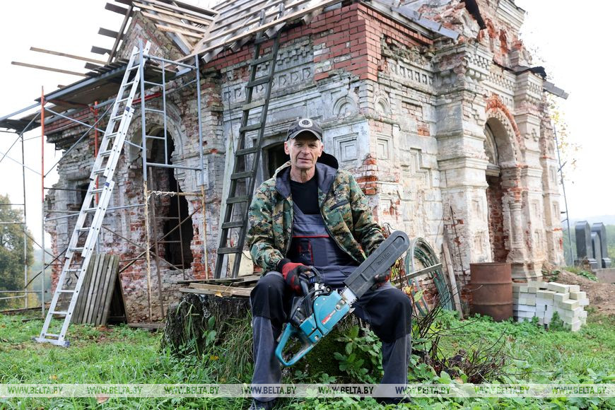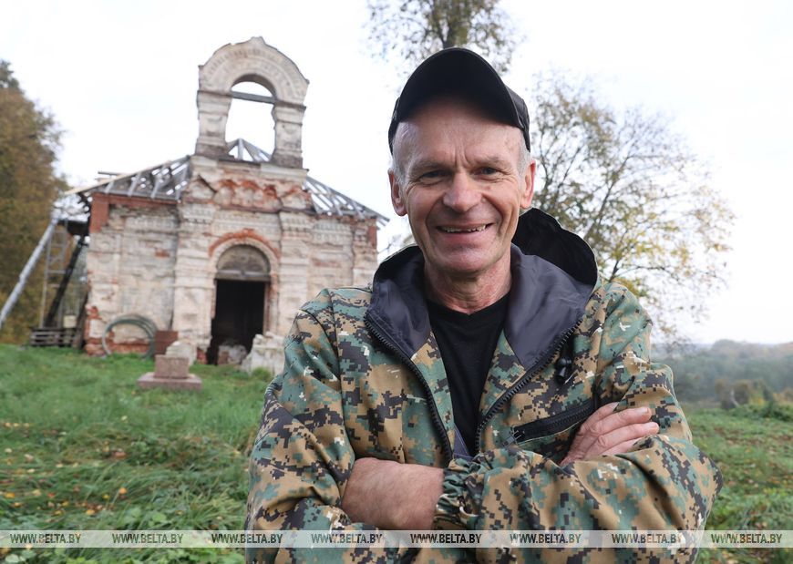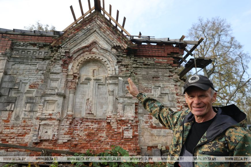 13 октября, Толочинский район /Андрей Щербицкий - БЕЛТА/. Пенсионер и бывший председатель местного райисполкома Александр Марейко уже более трех лет в одиночку восстанавливает часовню-усыпальницу князей Хоментовских в Толочинском районе. О своем новом хобби, которое появилось после ухода на заслуженный отдых, Александр Васильевич рассказал корреспонденту БЕЛТА.