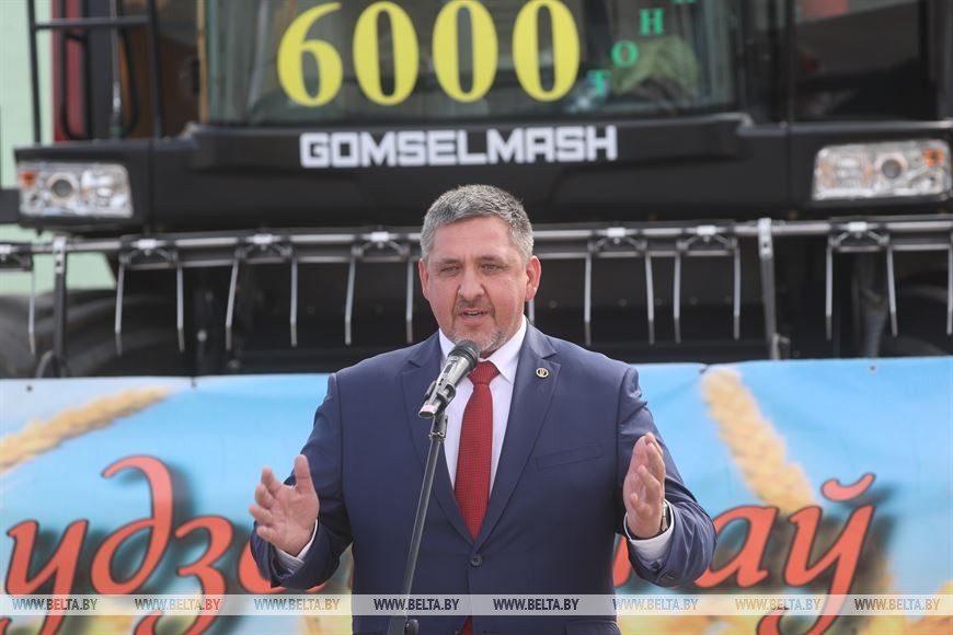 Касаясь комбайнов производства "Гомсельмаш", представитель Миноблисполкома подчеркнул, что "мы первыми в Беларуси закупили 40 единиц этой техники, и понимали, что за этим будущее". "Впереди предстоит уборка кукурузы на зерно, и здесь мы тоже ставим перед собой очень серьезные задачи. Речь идет не только об увеличении объемов к уровню прошлого года, но и расширении площадей посевов сельскохозяйственной культуры. И этот комбайн себя очень хорошо зарекомендовал, поэтому он будет активно использоваться при уборке кукурузы на зерно", - заявил председатель комитета по сельскому хозяйству и продовольствию.
