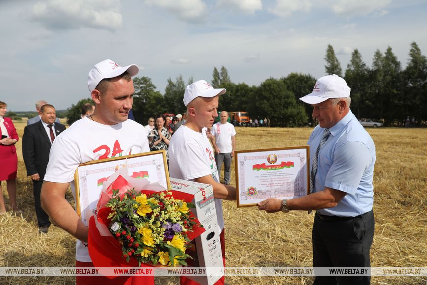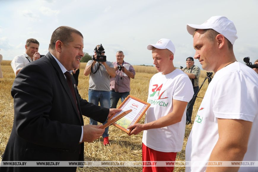 Первыми передовиками на нынешней жатве стали участники молодежного тандема Леонид Алексеенко и Сергей Колбасов, работающие на полях СПФ "Заозерье" ОАО "Витебский мясокомбинат" в Лепельском районе. К обеду 3 августа молодые механизаторы намолотили 1,3 тыс. т зерна без учета рапса.
