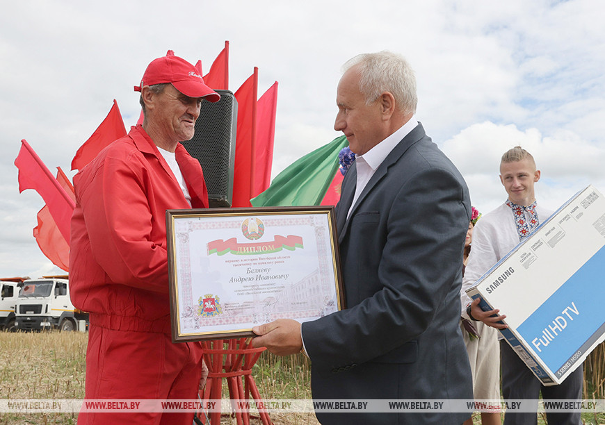 31 июля, Сенненский район /Ольга Богачева - БЕЛТА/. В Витебской области сегодня чествовали первого комбайнера-тысячника, передает корреспондент БЕЛТА.